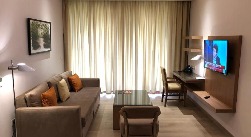 Air Conditioning, Balcony, Bath, Bathrobe, Bathroom, City view, Electric kettle, Flat-screen TV, Hairdryer, Kitchenette, Kitchenware, Microwave, Pool view, Refrigerator, Safety Deposit Box, Shower, Slippers, Sofa, Soundproofing, Tea/Coffee Maker, Tile/Marble floor, TV, View, Wake-up service, Wardrobe/Closet