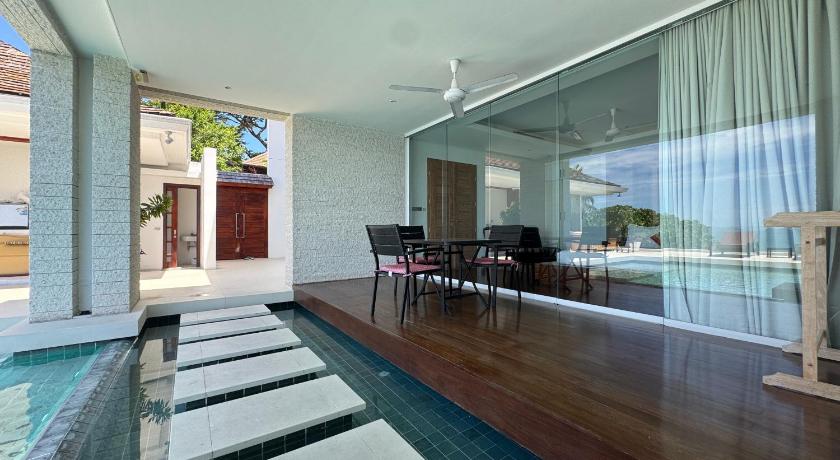 My partner and i stayed here for 12 nights, the villa was ideal for our stay. Very spacious, private and secluded, but as two women travelling we felt very safe, the hosts stayed near by and were wonderful. The view from the villa was amazing, the sunsets in the evening were beautiful and the pool was very big. One of our favourite things was the bathroom in the master suite, it was part out doors, with a large free standing bath (great for a cold dip) and an out door shower which added a really nice touch to the stay. Every day the host provided breakfast, which was an amazing service for a villa. I would highly recommend a stay here, and if we are back in Koh Samui we'd choose this villa