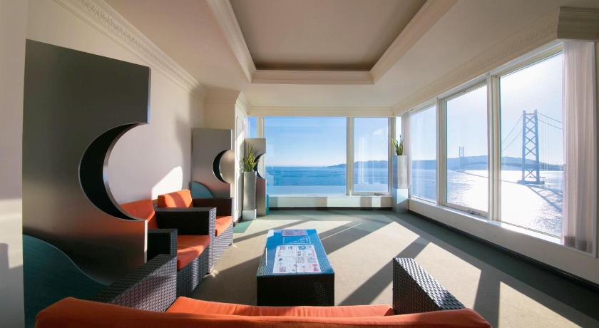 The hotel is located outside Kobe near a train station (about 7-10m walk). There are signs on the train station that guide you to the hotel. The train runs pretty often but less often than in the city. The room with a view of the bridge was excellent. We enjoyed watching the ships and traffic. The hotel itself is magnificent. The breakfast had a lot of choice and was really good.