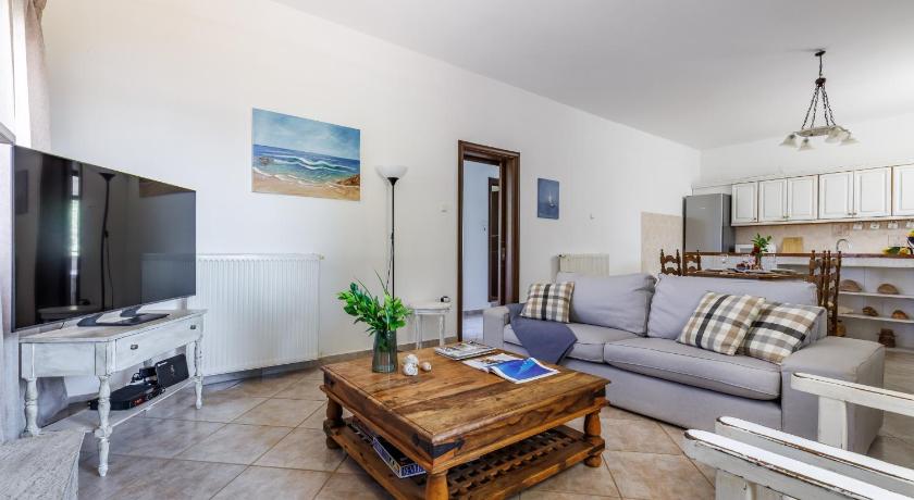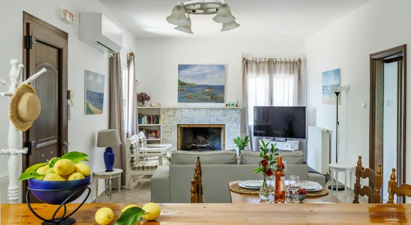 Charming villa, in a perfect location! Very clean, spacious, nice interior design, equipped with everything you need. Comfortable beds, the rooms are equipped with AC that cool the air in a few minutes, TV with big screen and free access to Netflix, a nice library from where you can choose a book to read. Villa has a big terrace with a very beautiful sea and island view, from where you can admire the sunset. The owners are amazing. They helped us with everything we needed. They picked up the garbage every day, cleaned the terrace every day, and changed the towels and bed sheets when we needed. Also, every day, they offered us lemonde or homemade cake or jams. They offered us beach umbrellas and beach toys for the kids. The property has a big and secure yard, for us it was very important that we could park our car in a safe place. The location is great: 2 minutes walk (with kids) from the Kolios beach and 10 minutes chill walk from a very good restaurant: Kioupi. We fell in love with this beautiful accommodation!