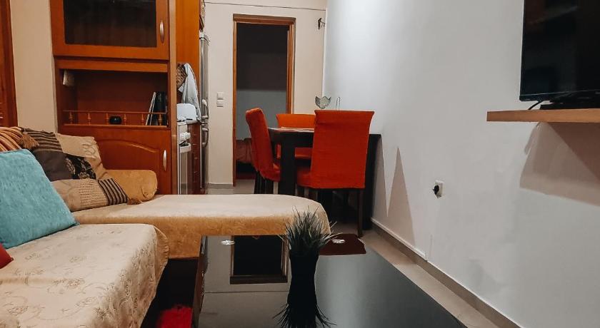 The convenient location, so quiet and so central, the spotless cleanliness, and the kindest host, Vassilis, who looked after us as if we were his guests.The fact that we had two separate rooms and we all had our own space.