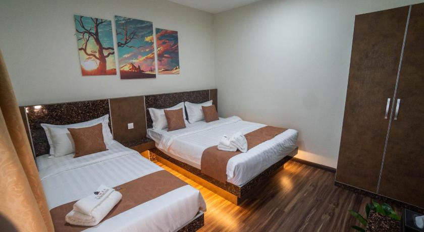 Good basic hotel for a night stop. As a family of 5 we found a good family room with two king size beds. Beds are comfortable, AC works and the room and bathroom is quite modern. They don't offer breakfast but they own a café just on the ground floor of the hotel. Besides, they also have a laundry service which worked perfectly for us. The place was quite, but it is near a mosque so you can hear the call for the morning prayer at 5 AM, although not a problem for us. The staff is very kind and helped us in everything we needed.