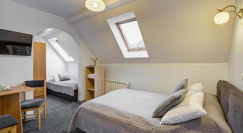 Clean rooms, convinient beds, water pool, playground with trampoline and slide table tennis. Owners are very friendly and ready to help. About 30 min by walk to the center. 15 min by walk to the lift to Observation Tower (Wieza Widokowa). There are shared fridge and microwave in corridor. Cooking utensils are available. Kettle in the room. You can hear your neighbors, but there were no noisy guests during our stay.