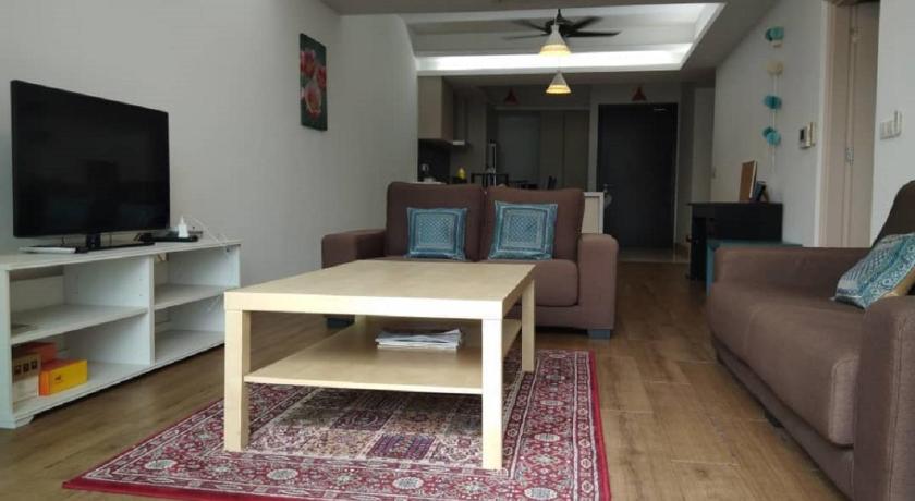 My family really like the apartment soo much.. it is cozy, home feel and spacious.. there are lots of extra blanket and pillow in the cupboard.. the kitchen is so big and fully furnished with rice cooker, oven, microwave, fridge, coway water cooler, plates, bowls and cups.. there are 3 bedrooms with double bed each room, 3 floor mattress and 1 sofa.. we really enjoy the time spent here.. the apartment looks aged but is well maintain.. the downside is hot water was not working well at outside bathroom .. only 1 parking lot available