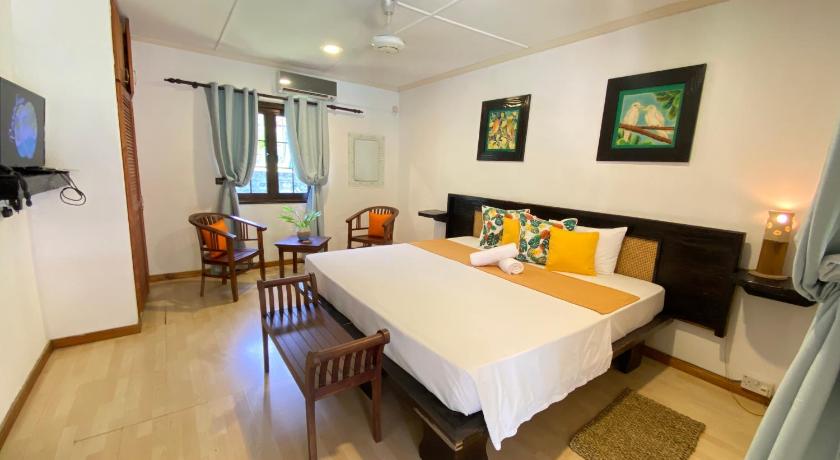 Air Conditioning, Balcony, Bathroom, Cable Channels, Clothes rack, Electric kettle, Entire unit located on ground floor, Fan, Flat-screen TV, Free toiletries, Garden view, Linen, Private entrance, Refrigerator, Seating Area, Shower, Telephone, Tile/Marble floor, Toilet, Towels, TV, View, Wardrobe/Closet