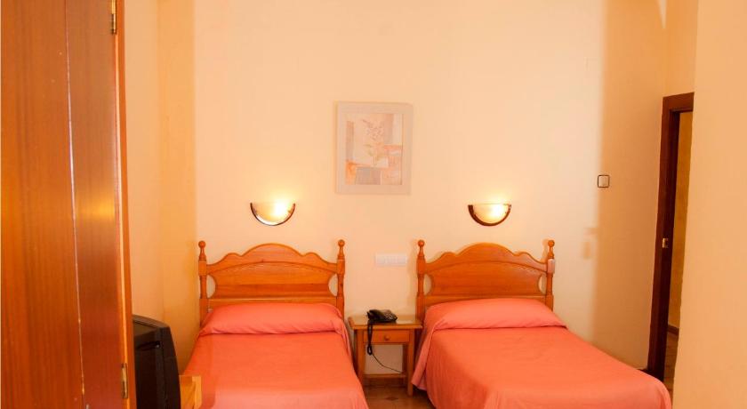 Good location. Not small room. A/C, TV, hairdryer, couple of chairs, wardrobe, bed was...good, bedside lamps. Supermarket Dia is just around the corner.