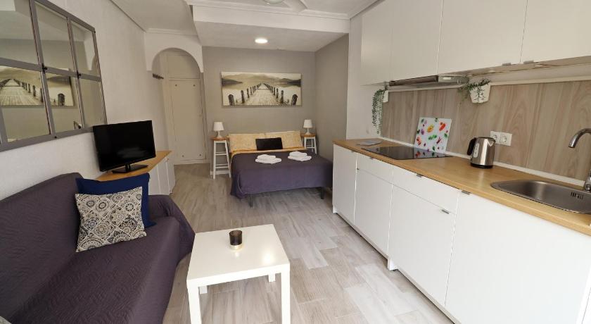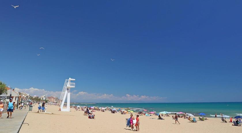 Great location, five minutes from the beach, and the apartment includes beach towels, a parasol and beach chairs which was perfect for lots of sunny days tanning by the seaside which was a mere 5 minutes walk away! There's a pool right outside the front door too.