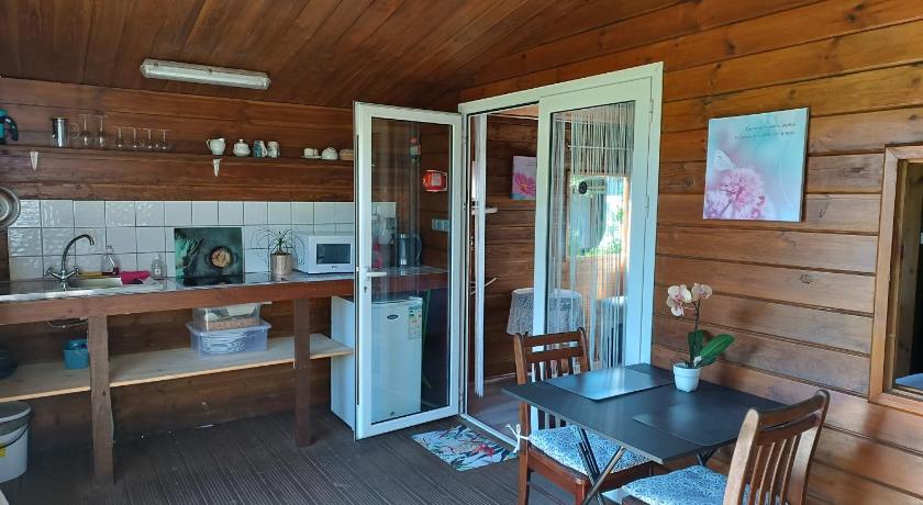 Bath or Shower, Bathroom, Clothes rack, Coffee machine, Dining area, Dining table, Electric kettle, Flat-screen TV, Garden view, Hardwood/Parquet floors, Heating, Kitchenette, Kitchenware, Linen, Microwave, Mountain view, Outdoor dining area, Outdoor furniture, Private entrance, Refrigerator, Seating Area, Shower, Sofa, Soundproofing, Stovetop, Tile/Marble floor, Toilet, Towels, TV, View, Wardrobe/Closet