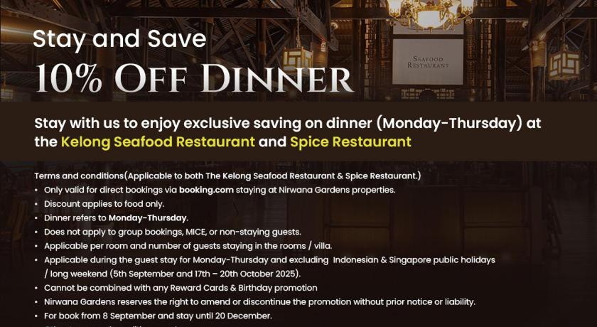 The proximity of the sea view chalet to the beach, the peace and tranquility of the spot, made it a really relaxing holiday for us. The property has maintained the harmony of greenery with modernity, soothing the senses, without compromising on comfort. The Kelong Restaurant and Calypso Floating Bar are a unique experience!