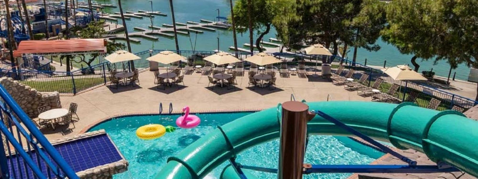 This lakefront resort in Lake Havasu City, Arizona boasts a 9-hole golf course, on-site dining and a splash pool with a waterslide. It also offers spa...more