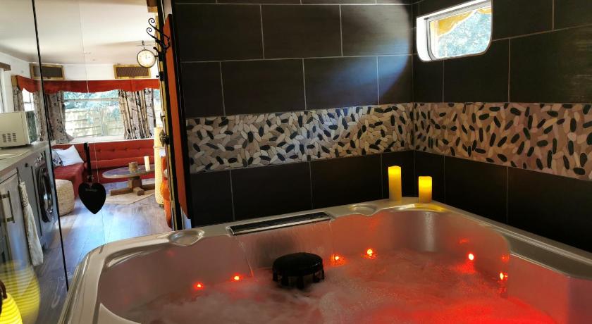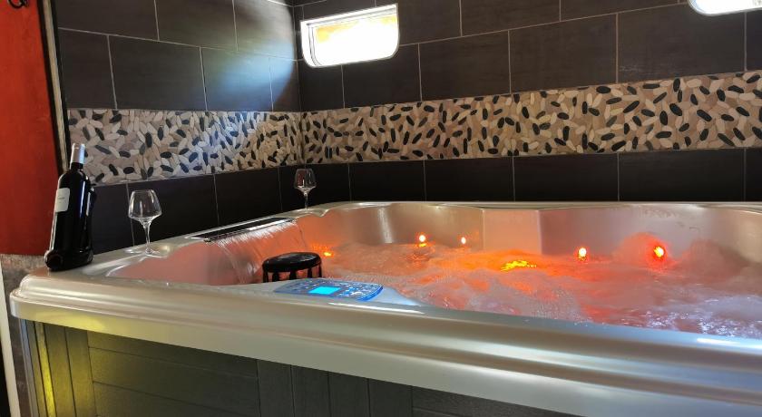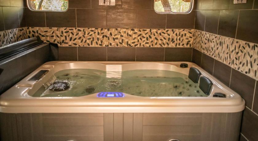 Air Conditioning, Bathrobe, Bathroom, Coffee machine, Dining area, Dining table, Electric kettle, Entire unit located on ground floor, Flat-screen TV, Free toiletries, Garden view, Hairdryer, Heating, Hot Tub, Iron, Kitchen, Linen, Microwave, Outdoor dining area, Outdoor furniture, Oven, Private entrance, Refrigerator, Seating Area, Shower, Slippers, Sofa, Stovetop, Terrace, Toaster, Toilet, Towels, TV, View, Wardrobe/Closet