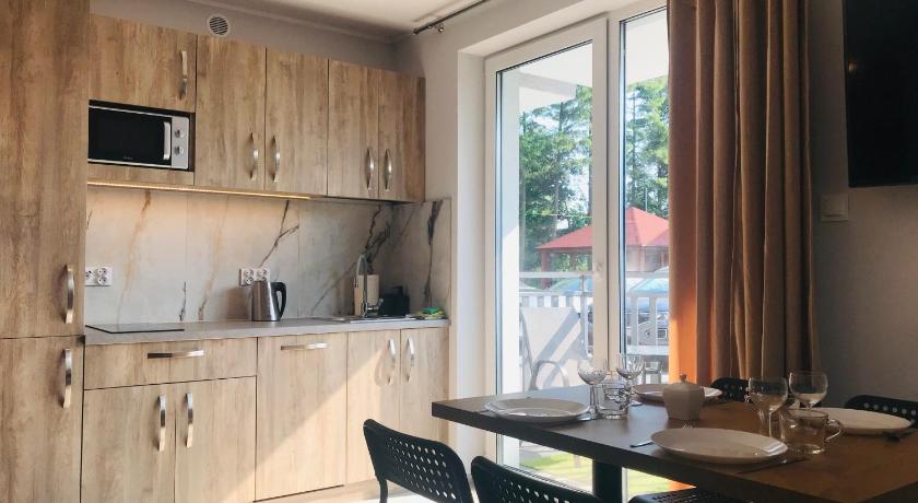 The appartment is located in the new modern complex with lot of parking space and outdoor barbecue spot. The building is being well maintained and the greenery well trimmed. At the arrival we were given a helping hand by nice guy (obviously not the owner of our appartment) who showed us around and helped with understanding the entry process using the codes provided by owners via sms. The appartment was clean, equipped with everything you could possibly need (even with two TVs) and two small terraces. The location is not central, neither close to the beach, but in Leba nothing is far, so it is not real problem. The big supermarket is virtually on the doorstep (one minute by walk) and another one, smaller over the street (3 minutes by walk). I can only recommend this place.