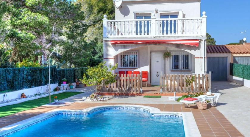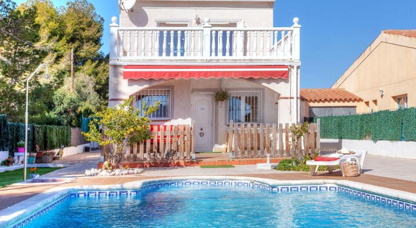 Air Conditioning, Barbecue, Bath, Bathroom, Bidet, Coffee machine, Detached, Dining area, Dining table, Dishwasher, Hairdryer, Ironing Facilities, Kitchen, Kitchenware, Microwave, Outdoor furniture, Oven, Patio, Private Pool, Refrigerator, Satellite Channels, Shower, Stovetop, Terrace, Toilet, TV, Upper floors accessible by stairs only, Washing Machine