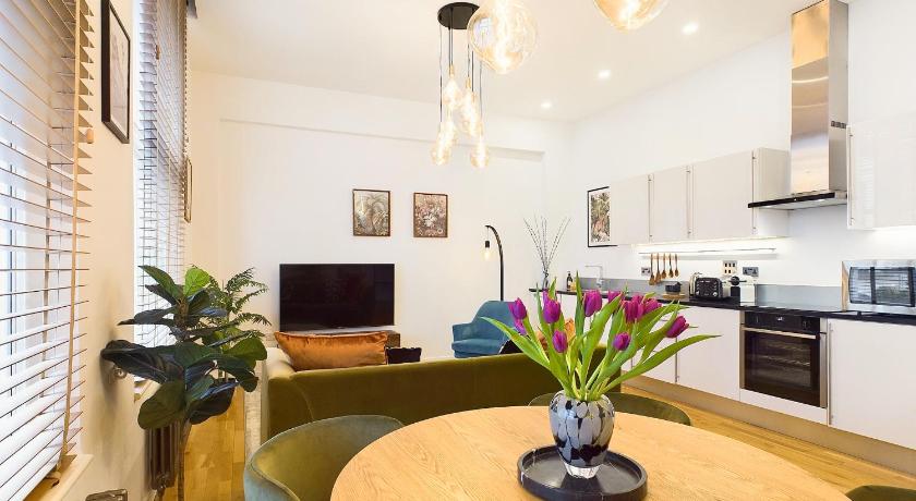 The best location in the center of London. Lovely, and cozy apartment perfect for couples. Really great amenities and fully equipped kitchen with washing machine and dishwasher. TV with HDMI for connecting your laptop :(