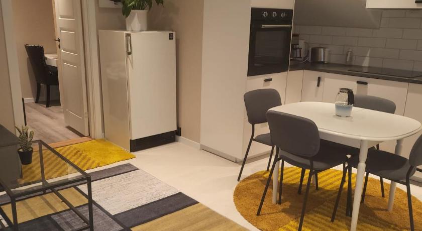 The place was very clean and welcoming. The host was responsive, and the apartment featured a fresh renovation and modern appliances: a coffee machine, kettle, stove, washing machine, and TV. The bed and sofa were not very comfortable, but I wouldn’t call them “bad” either. The apartment is equipped with cutlery, an oven, a microwave, etc. The bathroom has heated floors and a hairdryer. Everything was clean, with no dust, and there were rugs throughout the space. The train station is just a one-minute walk from the house, yet despite staying for two nights, we didn’t hear any train noise at night—the building is well soundproofed. Shops are about a 7-10 minute walk away. Overall, a good stay for the price. I recommend it.