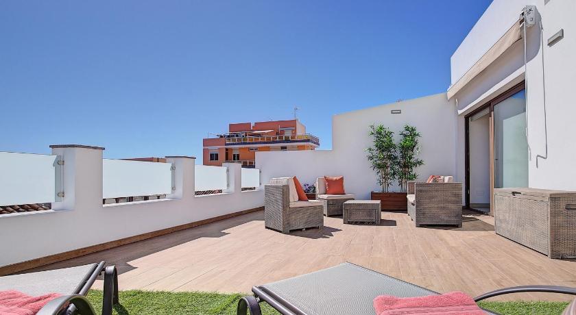 The apartment is the upstairs apartment of 2 in a house in a quiet and the best part of Los Llanos. It's in the quaint old town, a short walk from everything. The building has been beautifully renovated and is well furnished. Small bars, shops and cafés are nearby. The garage at 4€ per day is great for a car or motorcycle. There are 2 cycles for free use - the tyres might need pumping up. The large front terrace catches the sun and the small terrace at the back is in shade. Ely is lovely and a great host who doesn't speak a word of English or German so have an auto translate ready! Los Llanos is a good sized and interesting town with motorcycle and car hire up the road as well as good and regular bus connections around the island. At 300m up, it's slightly cooler than the coast but that's not a bad thing. The roads are great fun and challenging and walking possibilities are endless. Tourists are mostly middle aged/retired Germans with a few Dutch and English.