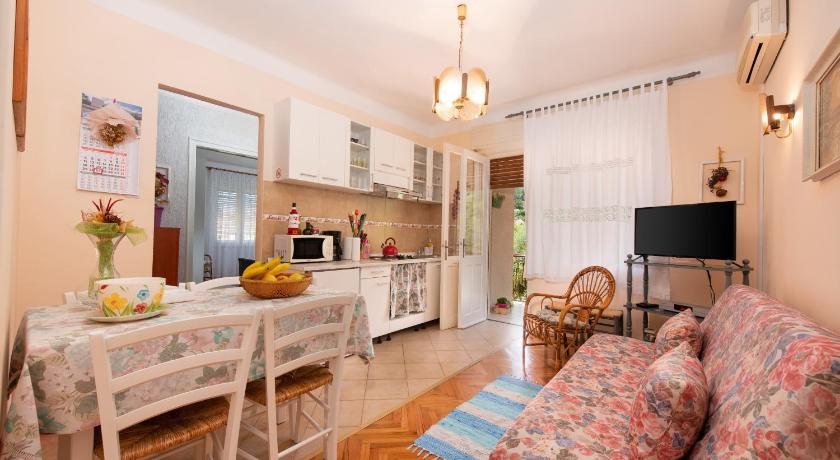 We loved the garden, the bbq place and the location of the apartment. The apartment was fare enough large, so it is OK. The apartment was tidy and super clean. Delfino pizza restaurant is very close !