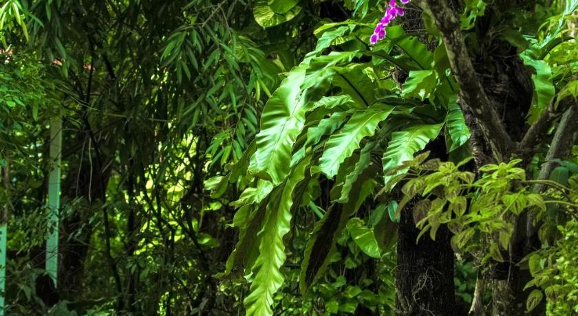 Stunning beautiful grounds with lush vegetation and orchids growing everywhere with cosy little private chalets set apart from each other so no noisy neighbours, well equipped, comfortable and quiet and a beautiful pool, excellent food (best hang ley I've had since I've been in the north) and a great breakfast!