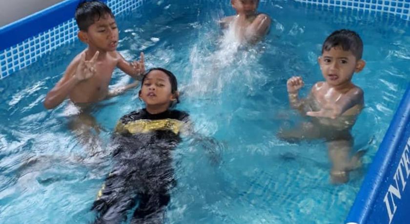 The pool is quite huge for children. They are happy with it