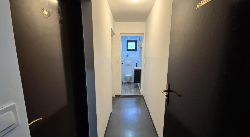 We only stayed one night here. The staff was nice and helpful. The room was a clean, modern university/school dormitory room with a small bathroom. The room is not too big, especially the desk, but it was enough for our stay. We were able to move one bed so that we have a double bed. Also there was a kitchen.