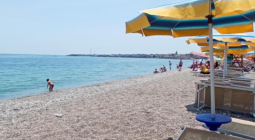 The apartment was great with a lovely roof terrace with spectacular views of Mount Etna and the beach. Lovely beach just 5 minutes walk. The location was quiet and there was a great fish restaurant just 2 minutes away. We also found it accessible without hiring a car, using train and taxi.