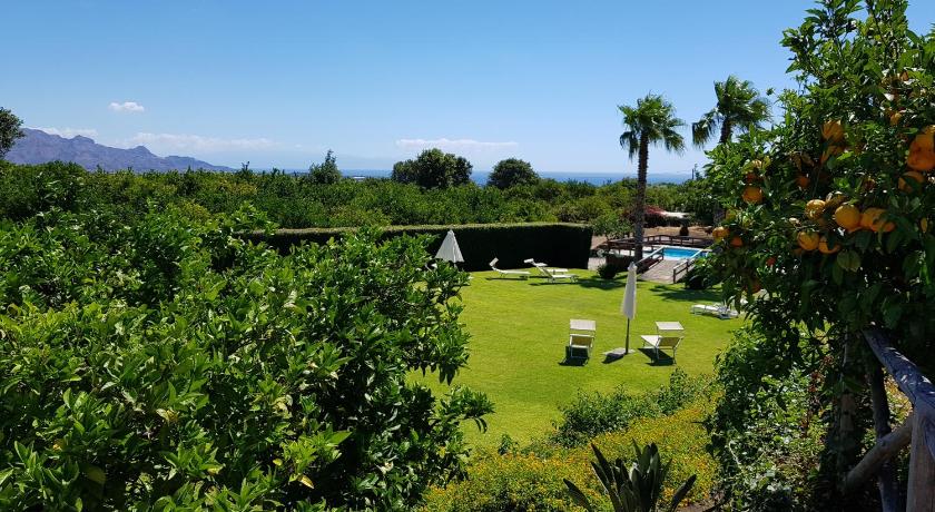 Beautiful setting between Mt Etna and coast in middle of orchard. Swimming pool and all amenities including Wi-Fi. Got fresh bread and croissants delivered every morning. Good view of Etna erupting