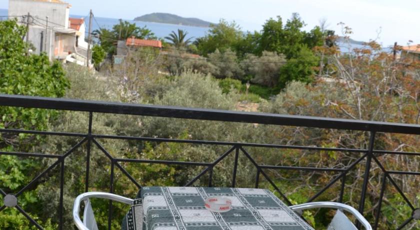 Verginis met us at the airport and was very friendly and helpful. He also allowed us to leave our bags in another vacant studio on our last day so we could enjoy another day out before he drove us back to the airport for our late flight. The studio was very comfortable with a lovely balcony with sun and shade overlooking fruit trees with the sea in the distance. Great sliding mosquito screen to the balcony so we could leave the doors open all the time. The beach is only 5 minutes walk and the town only 20 minutes walk. Such a great location. We ate at lovely nearby tavernas so didn't need to go into town at night. The shop and ATM were also just 5 minutes away.