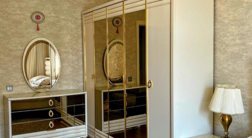 Air Conditioning, Alarm clock, Balcony, Bath, Bath or Shower, Carpeted, Cleaning products, Clothes rack, Desk, Dining area, Dining table, Fan, Flat-screen TV, Hairdryer, Heating, Iron, Ironing Facilities, Kitchen, Kitchenware, Linen, Microwave, Mosquito net, Oven, Private entrance, Refrigerator, Sea view, Sofa, Stovetop, Tea/Coffee Maker, Toilet, Towels, Towels/Sheets (extra fee), TV, View, Wardrobe/Closet, Washing Machine