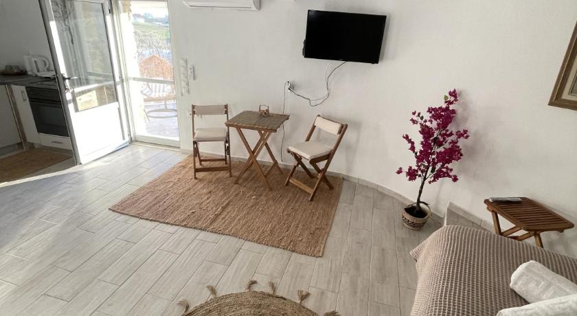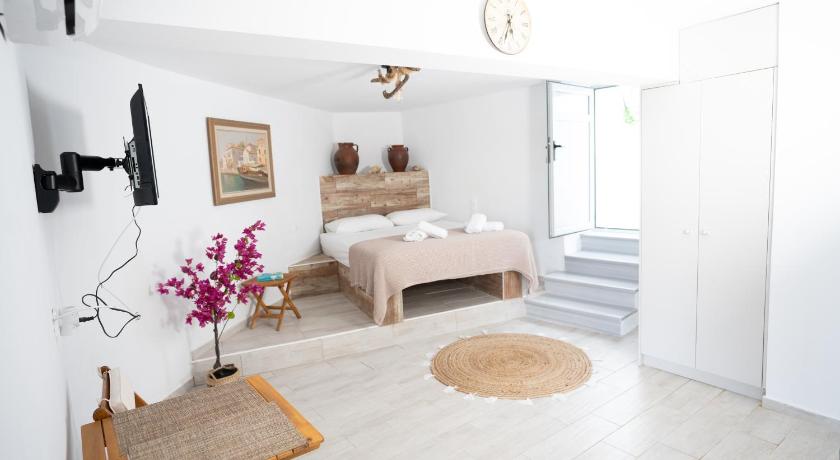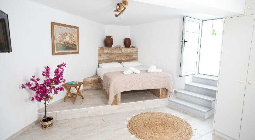 Magical car free village, wth mysterious streets and a lovely village bar and local shop and 2 excellent restaurants. A dozen interesting villages close by and sandy beaches to north and south in less than half an hour. Tinos town twenty minutes away. We booked 2 nights and stayed 6. A beautifully converted building.