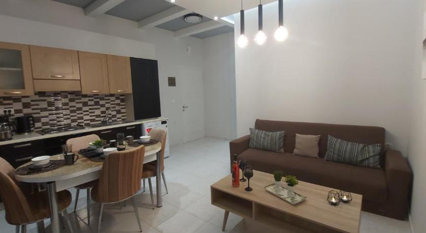 Air Conditioning, Balcony, Bath or Shower, Bathroom, Cleaning products, Clothes rack, Coffee machine, Dining table, Electric kettle, Flat-screen TV, Free toiletries, Garden view, Hairdryer, Iron, Kitchen, Kitchenware, Linen, Mountain view, Outdoor furniture, Oven, Private entrance, Private flat in building, Refrigerator, Sea view, Seating Area, Shower, Sofa, Soundproofing, Stovetop, Terrace, Tile/Marble floor, Toilet, Towels, TV, Upper floors accessible by stairs only, View, Wardrobe/Closet, Washing Machine