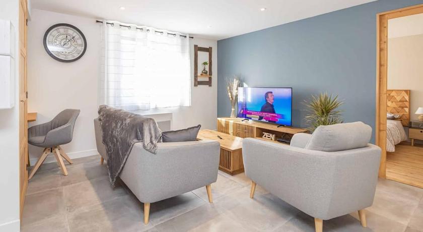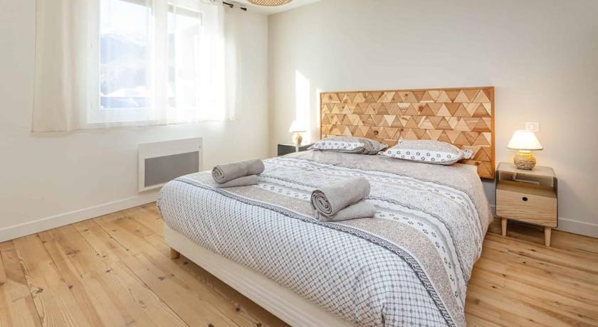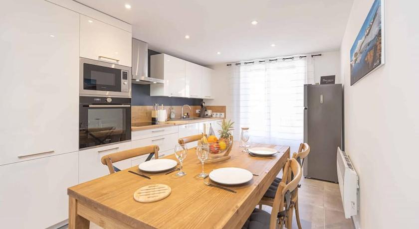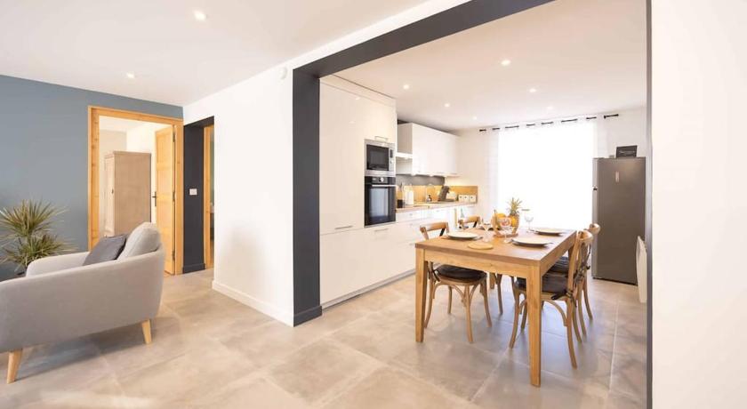 modern, renovated apartment with nice views of mountains in the background. full sized spacious kitchen with large table. lots of windows, airy and bright. wifi worked well. washing machine and dishwasher worked well. easy street parking right outside the door. very quick walk to boulangerie and the tabac (less than 3 minutes). highly recommend this property.