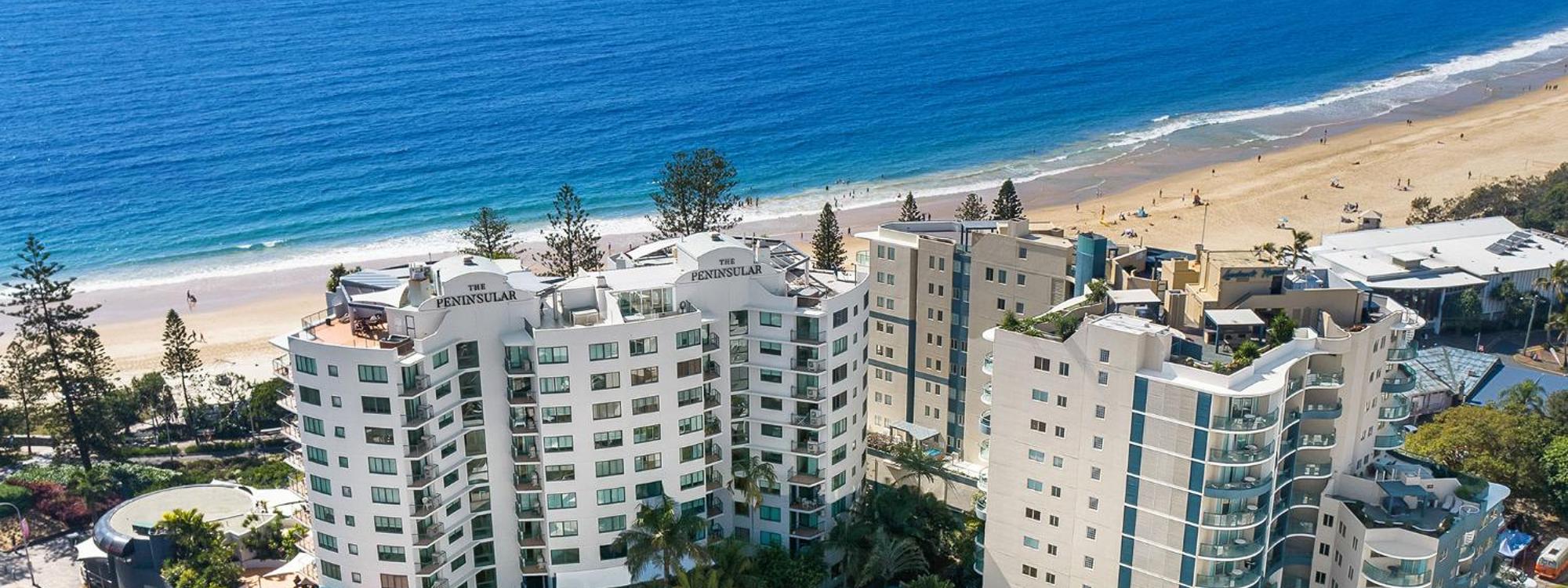 The Peninsular Beachfront Resort features self-contained apartments overlooking Mooloolaba Beach and Bay. Guests can relax in the heated pool or sauna...more
