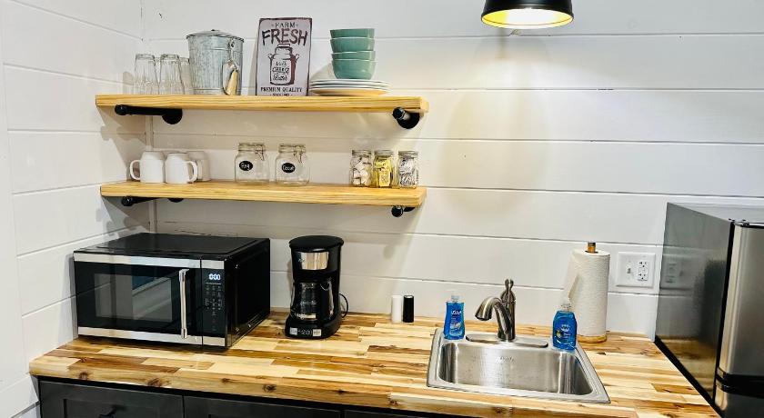 Modern, clean and comfortable. Easy check-in/out, great location downtown; cabin provided everything we needed for a clean and comfortable stay.
