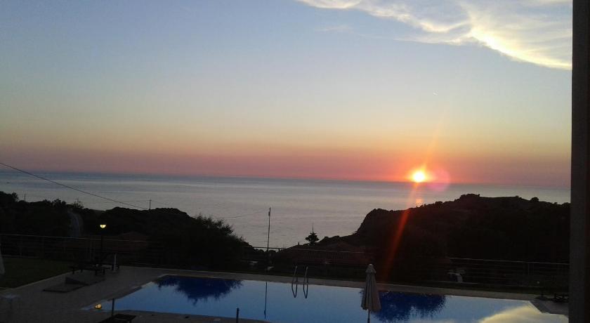 Friendly hosts, great view of sunset, lovely shared pool to relax by with plenty of loungers, great daily cleaning service, not too far from Molyvos town, walkable in about 20 mins. You probably need a car or moped for getting food and groceries though.