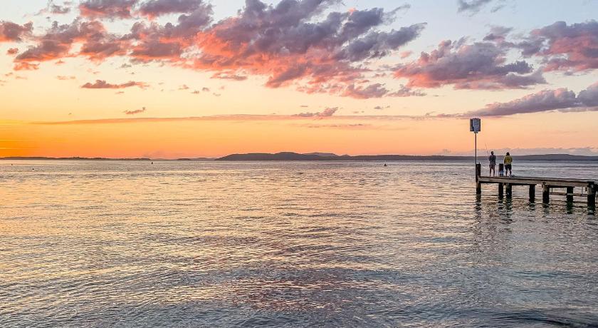 Stunning views over Shoal Bay, very quiet location with easy walking distance to Fingal bay shops. Saw 🐬 🐬 🐬 and native birds everyday. Unit has a very well equipped kitchen and a lovely new bathroom. Having a second toilet was nice too. Recommend highly