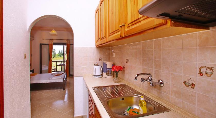 I strongly recommend. This is our second time staying here. A family hotel with very kind hosts. We easily communicated with Google translate. A quiet place, just a 5-minute walk from the beach. Well-equipped kitchen, barbecue, air conditioning, TV. Possibility to buy fresh fish. In the morning we bought pastries from the bakery nearby. There is a tavern, a bar and a supermarket next to the hotel. The island is beautiful and offers many possibilities - to rent a boat, motorbike, etc. Thank you very much, Maria! You are wonderful!😍 Greetings from our entire family!