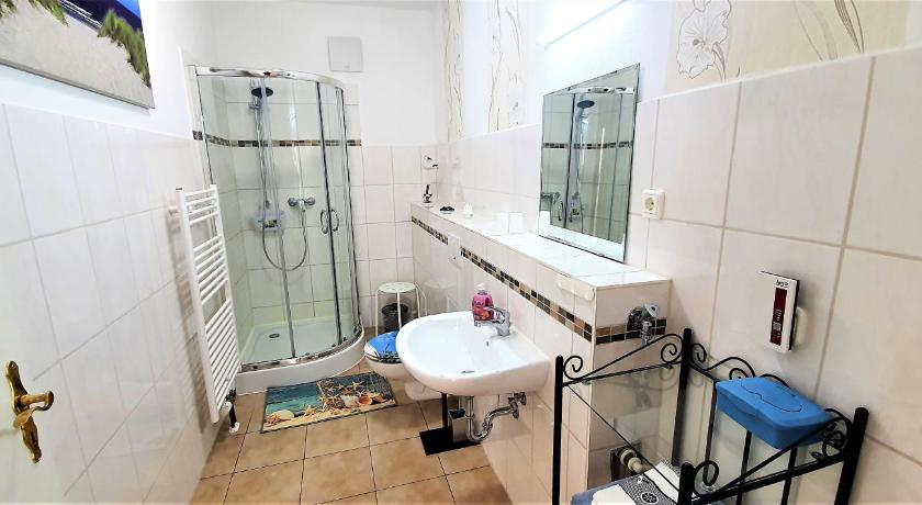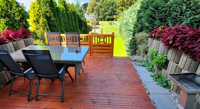 Nice,spacious,full of daylight apartment.(No5). Equipped with almost everything. Even too many utensils. Very comfy beds. Many cupboards,big wardrobe. Quiet surroundings. A huge garden with a pool,patio etc. For bikers close enough to the nearest Bansin. A very straightforward,helpful and agreeable host, Mr Lange. NOTE:Booking.com shows the back side of the building, so follow the number of the house.The owner's door's on the right side of the building, not front. Not signed.