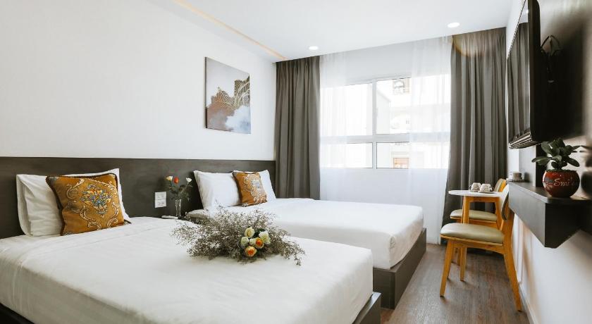 Just insane value. It was £11 a night. The people in previous reviews who have some critical thoughts should probably be reminded how good a deal this place is. Yea it’s small rooms but for the price, it’s great. Also super close to all the main streets in Nha Trang whole being in a quiet alley. We stayed previously in another hotel that was on a main road and as a result, much louder.
