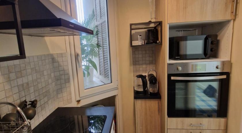 The district where the apartmant is located is just amazing. Beautiful buildings everywhere, quiet streets with a lot of services - cafes, bakeries, restaurants, shops. The promenade is just a 5 mins walk, the old town of Nice is also reachable on foot - 15 mins. The apartmant is a good value for its price, it was clean, comfortable, has every kind of basic things you need for a few days. I would recommend for staying for 2 to 4 persons.