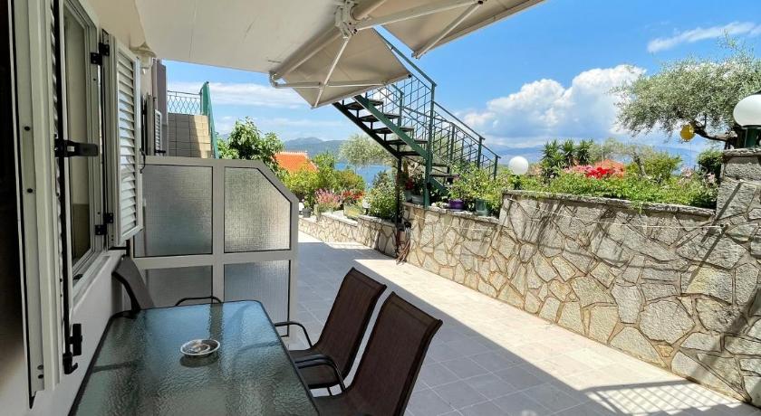 Air Conditioning, Balcony, Bath or Shower, Bathroom, Clothes rack, Coffee machine, Desk, Dining table, Electric kettle, Entire unit located on ground floor, Flat-screen TV, Free toiletries, Garden view, Hairdryer, Heating, Kitchenette, Kitchenware, Linen, Mountain view, Outdoor furniture, Patio, Private entrance, Private flat in building, Refrigerator, Safety Deposit Box, Sea view, Shower, Stovetop, Terrace, Tile/Marble floor, Toilet, Towels, TV, Upper floors accessible by stairs only, View, Wardrobe/Closet