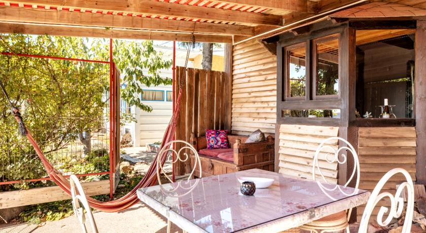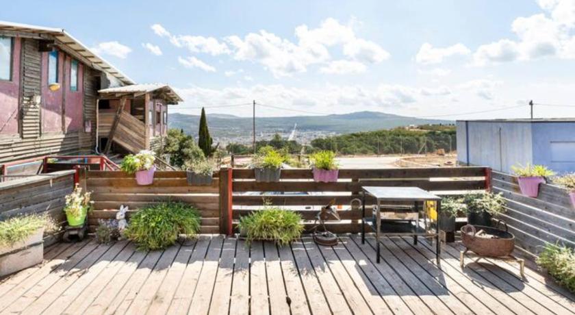 Since we very much like original non conformative places with character and not hotel like places, we very much liked Mira's Zimmer. It is located in a small "settlement" , in which people were allowed to settle in small houses which used to be in former times army baracks. Only about six families live in these basic houses which everyone changed according to their liking and original design. Mira's Zimmer looks from outside like a funky small shed, but inside it really is a very conformable and originally designed place with a confortable double bed and a beatiful small garden and a wooden deck from which one has a wonderful view on the Ram lake and the agriculture fields of the Druze communities around Nimrod . When we arrived cookies, cherries abd wine was waiti g for us in the zimmer and Mira came to greet us and give us many useful advices what toti see in the area. If one likes tranquil authentic places with character and a view, this is definitely a place for you.