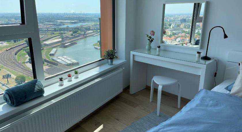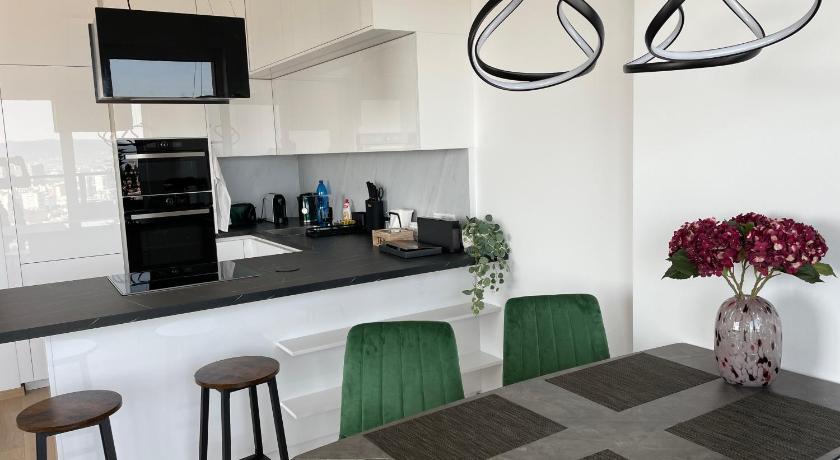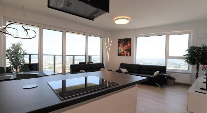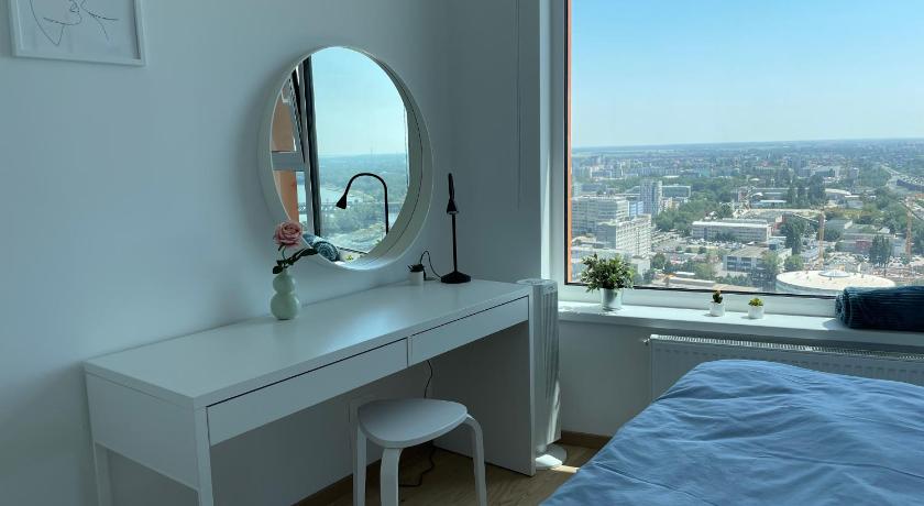 The accommodation is a well equipped apartment on the 30th floor of a skyscraper. Breathtaking view on the city. All attractions are well within walking distance, castle is app 30 mins walk, oldtown 15 mins. Easy check is, easy parking...I can only recommend this place.