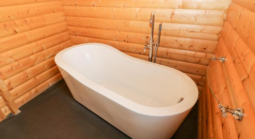 The house was a Swedish-style log cabin which was extremely warm and comfortable. It had it's own private jacuzzi(outside) and a huge large bath (inside). The shower in the en-suite was also excellent. Lovely views of the fields and pheasant, sparrowhawk and other birds.