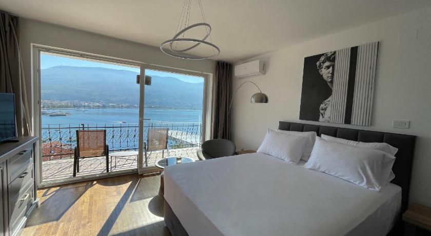 The breathtaking views that hit you as you walk into the room provide the ultimate wow-factor. The balcony was perfect- a great size and had lighting for evenings. A choice of pillows as well as a coffee machine, tea selection and refrigerator were great. The extra touches of local wine, bottled water, slippers etc. made it even more special. The location is perfect- a few minutes walk uphill from the centre of Ohrid old town but worth it for the views. We cannot recommend this place enough and it was amazing value for money. Thank you to our lovely hosts!