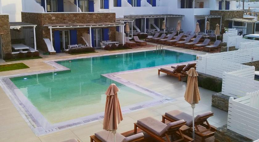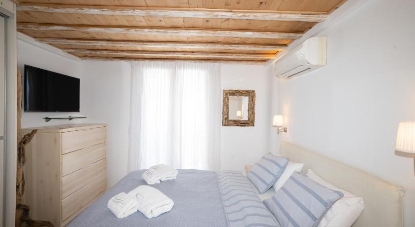 Very nice two-level apartment with a large balcony and swimming pool view. The swimming pool is big and comfortable. You are 50 m from the Ornos beach ( really nice and quite protected from wind) with many restaurants and 5 min walk to Bakery, Food Market and public bus stop that can take you to Mykonos city center in 10 min (2 Eur/person). Julia was taking care of us and she was really helpful. Thank you Julia! 😊