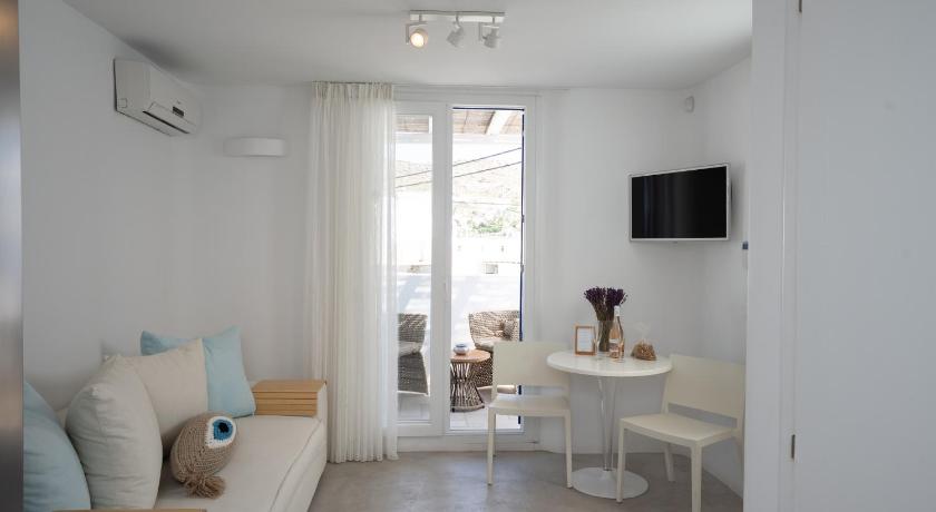 Location is great, close to the airport, Mykonos town and only 50 m from Ornos beach. You step out of the property and one of the less windy, stunning beaches of Mykonos is at your doorstep. There is a supermarket nearby, public bus stop and many restaurants, bars, car rentals etc. a few steps away. The pool is very nice, suitable for children and adults alike, with enough sunbeds and umbrellas available (why pay for those on the beach?). The apartment is nicely appointed, comfortable, well equipped (kitchen, dishwasher, washing machine, iron & board - you don't miss anything) and it is serviced daily. The hosts, Julia & Marcia are extremely adorable, always present and ready to assist you, provide information, always with a smile. We came as guests, left as friends! Thank you both for making our Mykonos holiday unforgettable!
