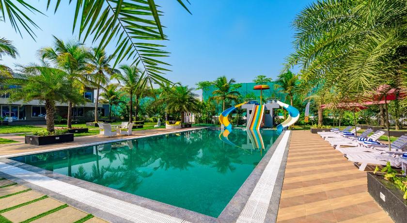 Formerly SaffronStays Palm Paradise - swimming pool with water slides, gazebo and indoor games