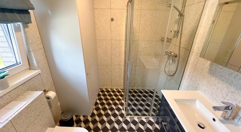 Additional Toilet, Barbecue, Bath or Shower, Bathroom, Carpeted, Cleaning products, Clothes rack, Coffee machine, Dishwasher, Electric kettle, Fan, Flat-screen TV, Garden view, Hairdryer, Hardwood/Parquet floors, Heating, Iron, Kitchen, Kitchenware, Linen, Mosquito net, Outdoor dining area, Outdoor furniture, Oven, Private entrance, Seating Area, Shower, Sofa, Soundproofing, Terrace, Toilet, Towels, Tumble dryer , View, Wardrobe/Closet, Washing Machine