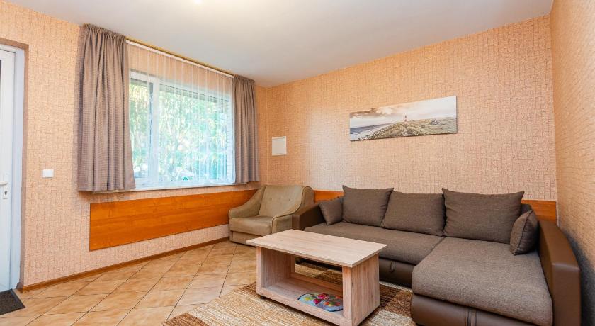 Everything. Nice and helpful host. They even gave as 2 sets of keys, which is very convenient if you and your companion spend some time not together. Centrally located. Seashore, city center, main street all are 5-10 minutes by foot. It may be a bit away from bus station (if you will arrive by bus), but it is more the problem of bus station, not the property. Quite spacious parking lot. At least apartment with private entrance where we stayed had dedicated parking space. Apartment is located on ground floor, so it was not hot in the apartment, though air temperature was about 30 degrees Celsius. There was kitchenette in our apartment (fridge, small electric stove, microwave oven, tea kettle), so it is possible to prepare light dishes.