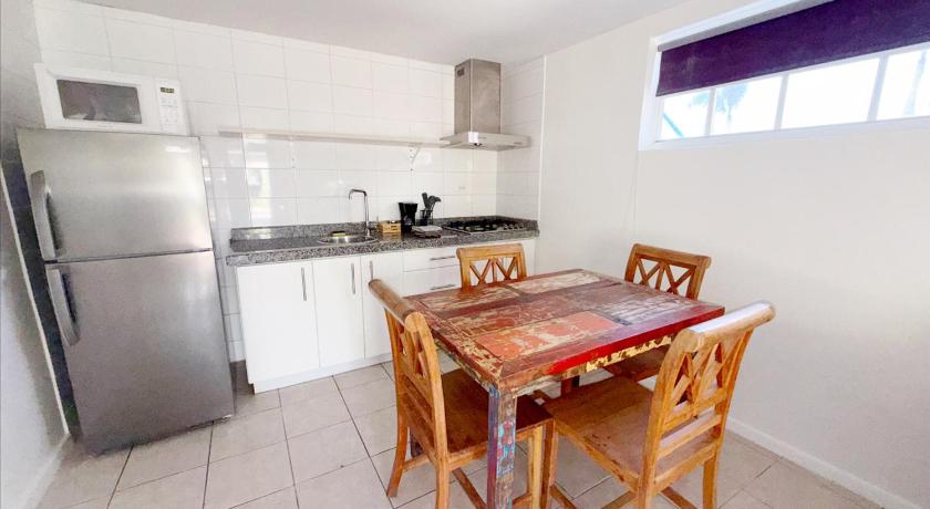 It was just what we were looking for. The on-site staff were friendly and helpful. The apartment was clean with upgraded amenities. The shower pressure was great. Location is perfect for anyone looking to get away from the busier resort area. The compound is small and cozy with lots of personality. Each apartment has an outdoor terrace, and the compound is secured by walls and a coded gate entry. The distance to the beach area was only a 10-15 minute walk.
